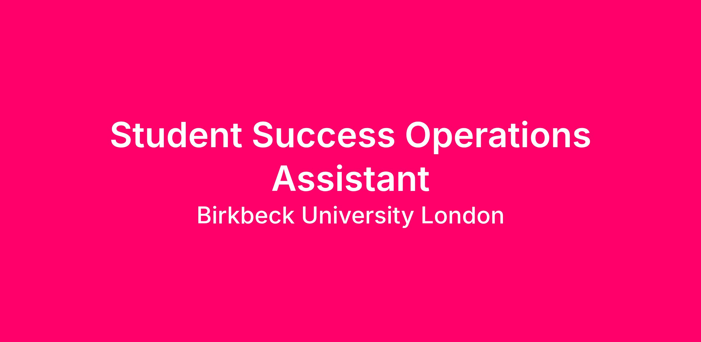 Birkbeck, University of London, is seeking a motivated and skilled operations assistant to join the Student Success team within the Education and Student Experience Directorate.